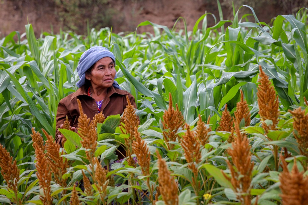 The woman pictured is a member of Qachuu Aloom, an organization whose name translates to “Mother Earth” and works to empower other women and youth by promising food security and self-sufficiency. Qachuu Aloom has 150 member families who grow native plants, like amaranth pictured in this photo, to nourish themselves and gain a little extra income.