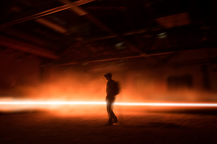 Visitors are completely alone in the installation room, but they do not cross the border unaccompanied. They are joined by a group of holographic migrants. To create CARNE y ARENA, Iñárritu worked with immigrants who reenacted their own border-crossing experiences, not actors.